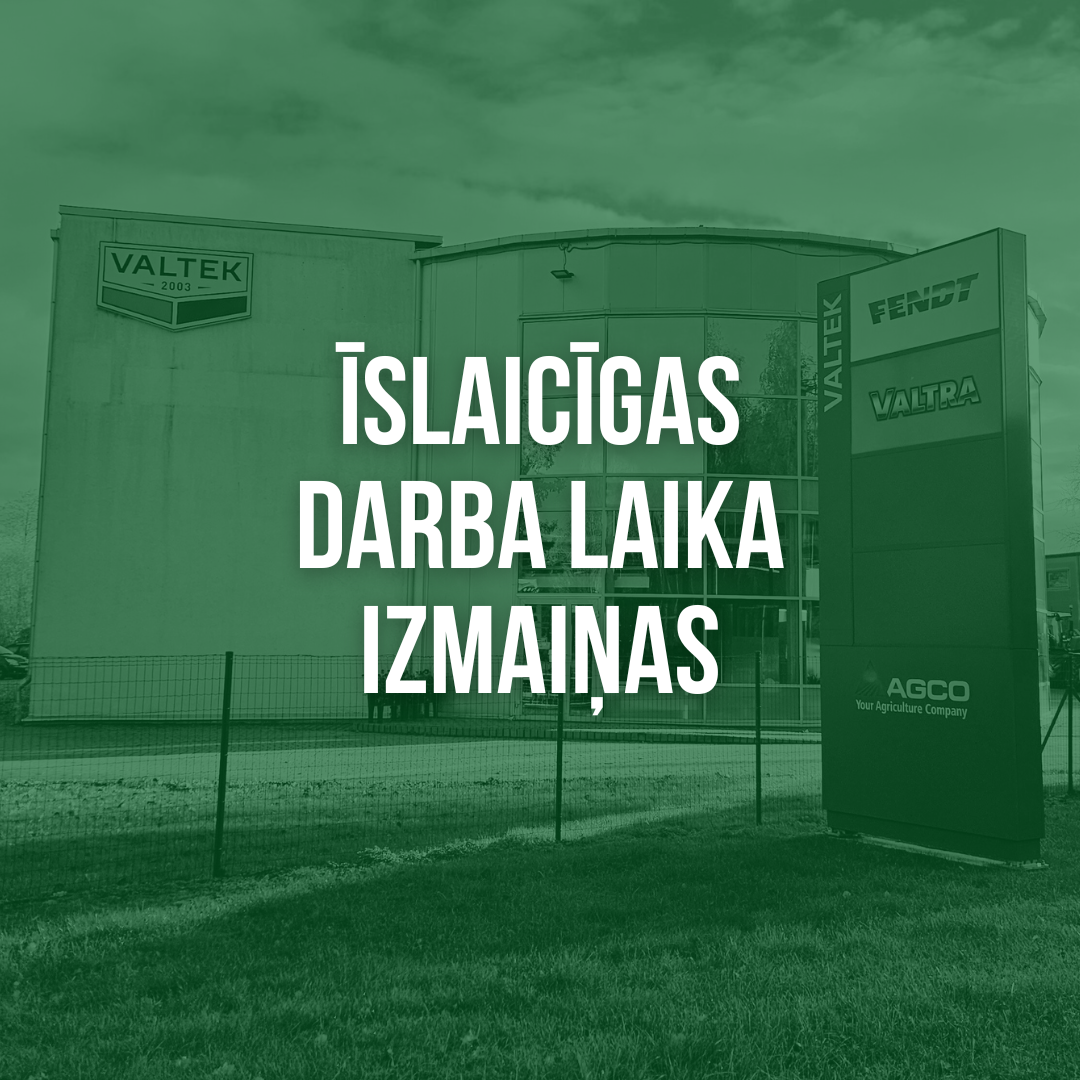 8.decembrī ierobežota būs Valtek Ozolnieku filiāles darbība, savukārt 10. decembrī Valtek Jelgavas servisa darbība.