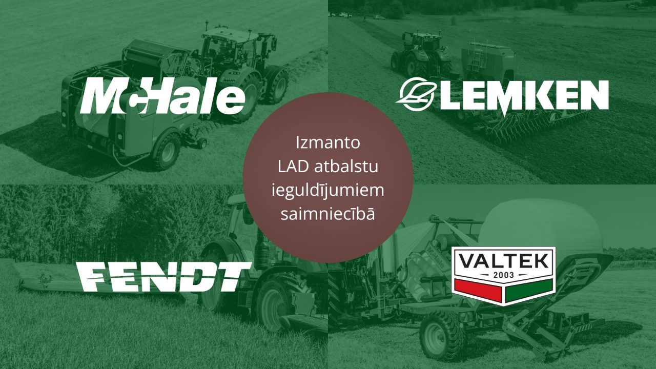 Aicinām lauku saimniecības un zemniekus izmantot **Lauku atbalsta dienesta (LAD) pieejamo valsts un Eiropas Savienības atbalstu investīcijām lauksaimniecības tehnikas un agregātu iegādei 2023–2027. gada plānošanas periodā. Šī atbalsta kārtība sniedz iespēju saņemt līdz pat 40 % (vai vairāk) līdzfinansējumu tehnikas iegādei, kas palielina konkurētspēju un modernizē saimniecības darbību.