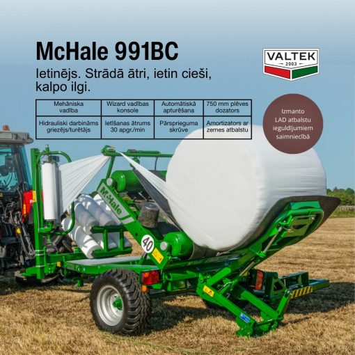 🟢 McHale ietinēji — uzticami ruļļu ietinēji lopbarības sagatavošanas ciklam.