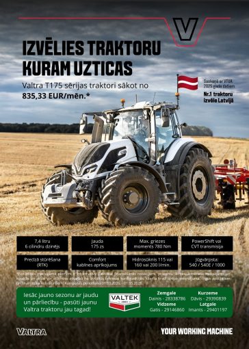 Ar Valtra pavasara finansējuma piedāvājumu jaunu traktoru iespējams iegādāties ar prognozējamu un saimniecības naudas plūsmai pielāgojamu maksājumu struktūru.