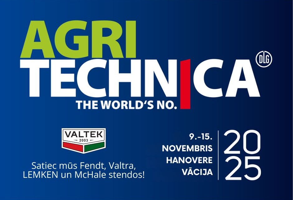 Valtek produktu grupu vadītāji Ansis Ansbergs un Gatis Jeršovs aicina Latvijas saimniecību pārstāvjus uz tikšanos Fendt un Valtra, kā arī LEMKEN un McHale tehnikas zīmolu stendos starptautiskajā lauksaimniecības izstādē AGRITECHNICA 2025. Valtek komanda Hannoverē būs no 10. līdz 15. novembrim, lai dalītos jaunākajās tehnikas un risinājumu aktualitātēs, kā arī sniegtu individuālas konsultācijas Latvijas klientiem. Lai norunātu tikšanos ar Ansi – zvani +37128015392. Lai norunātu tikšanos ar Gati – zvani +371 25751177.